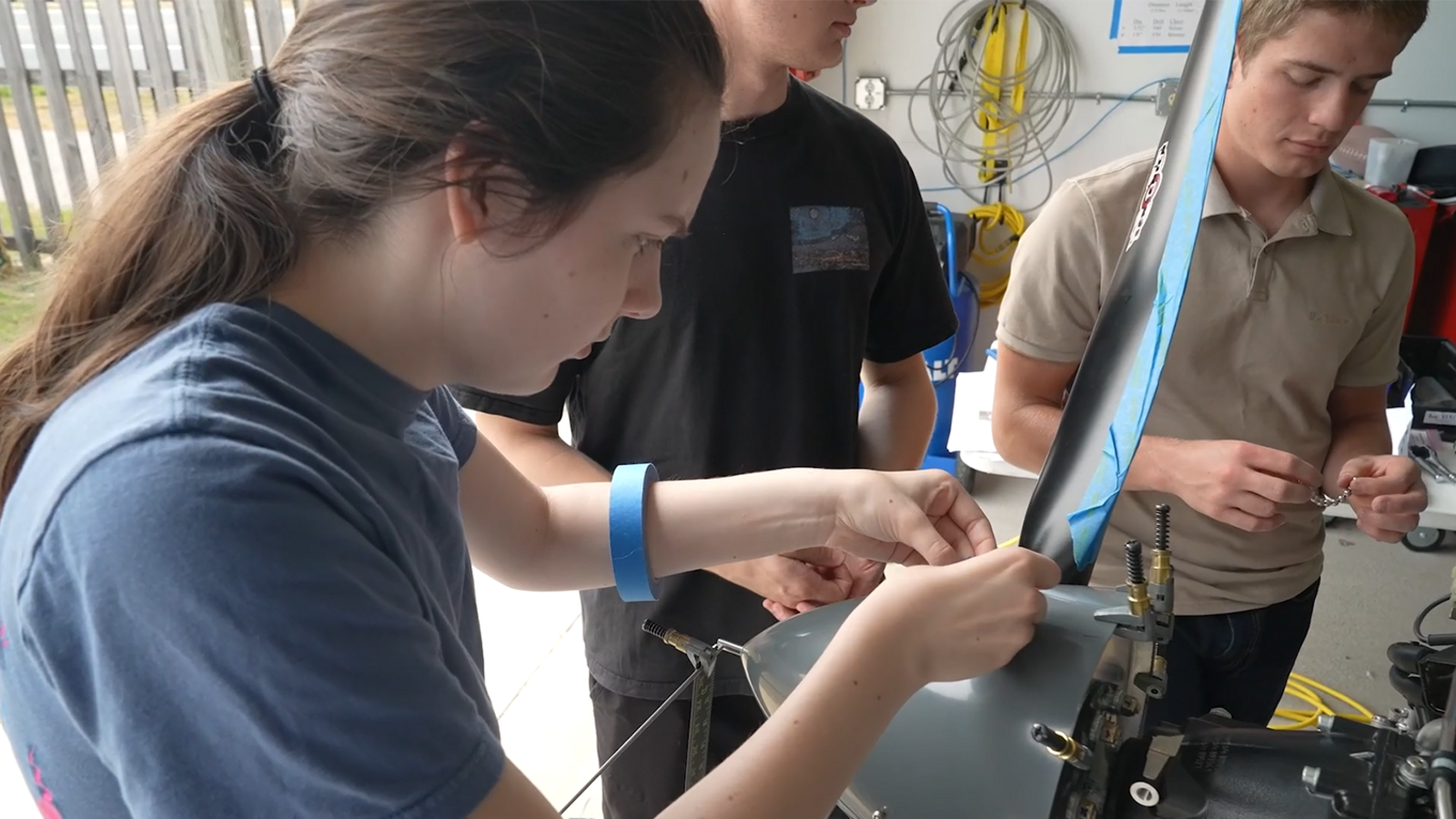 The students started by inventorying parts, then building the tail, rudder and stabilizer and working their way forward. By spring 2024, the main body began taking shape. Teams rotated time in the lab and in the library studying aviation.