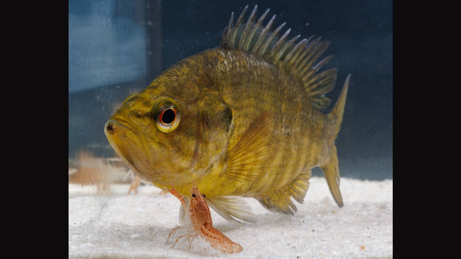 The results were stark. When exposed to the warmouth, the crayfish mostly scurried to a corner and stayed still, sometimes raising their claws in defense. They rarely ate. But when exposed to the eel, the crayfish barely responded at all.